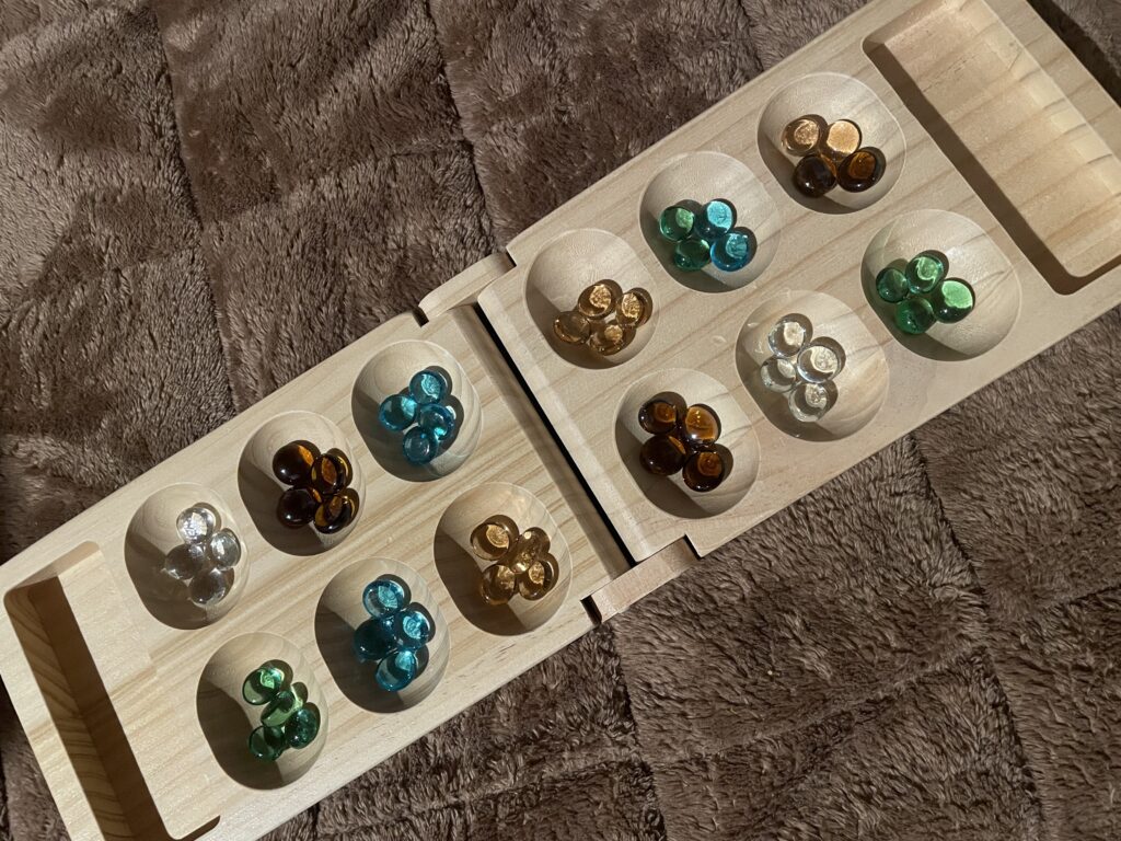 コレは、マンカラ・カラハというボードゲームでございます。